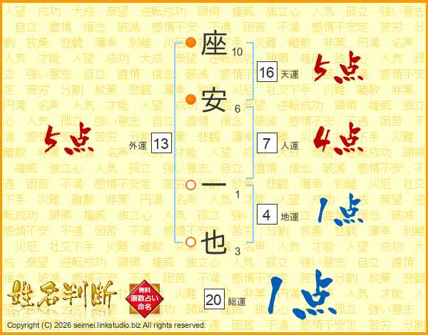 座安一也さんの人運は7画の4点!