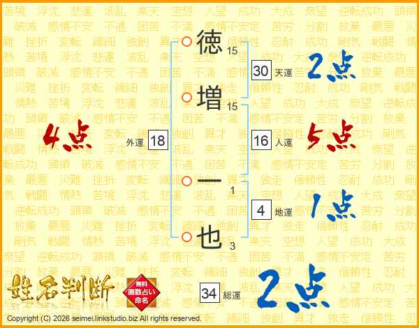 徳増一也さんの天運は30画の2点!