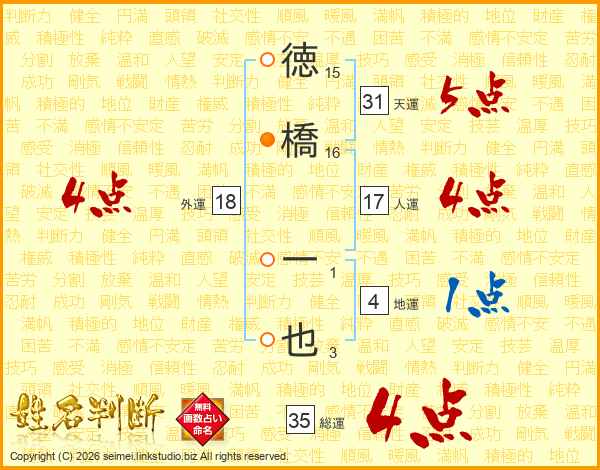 徳橋一也さんの総運は35画の4点!