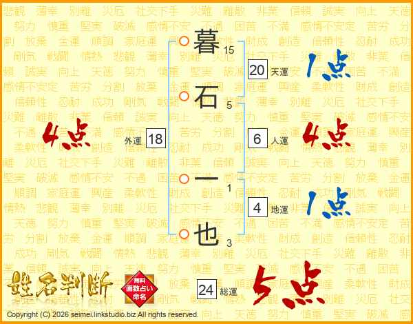 暮石一也さんの総運は24画の5点!