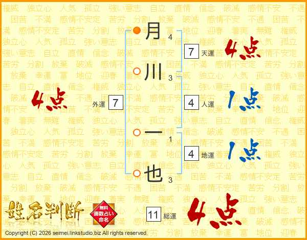 月川一也さんの総運は11画の4点!