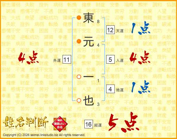 東元一也さんの総運は16画の5点!