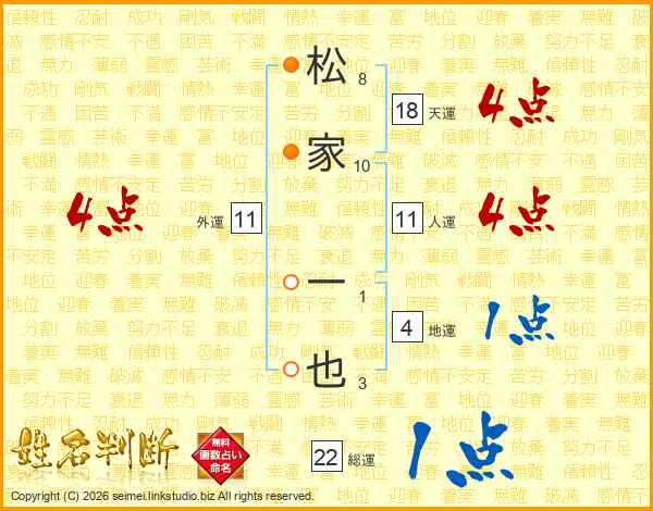 松家一也さんの人運は11画の4点!