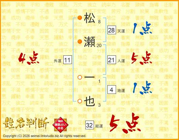松瀬一也さんの総運は32画の5点!