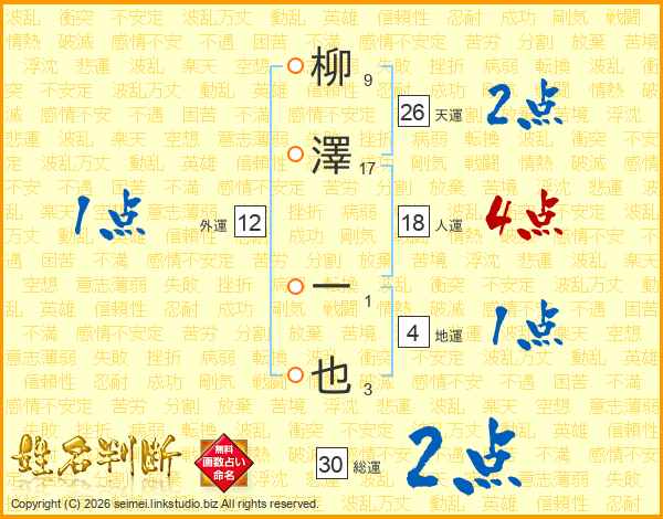 柳澤一也さんの天運は26画の2点!