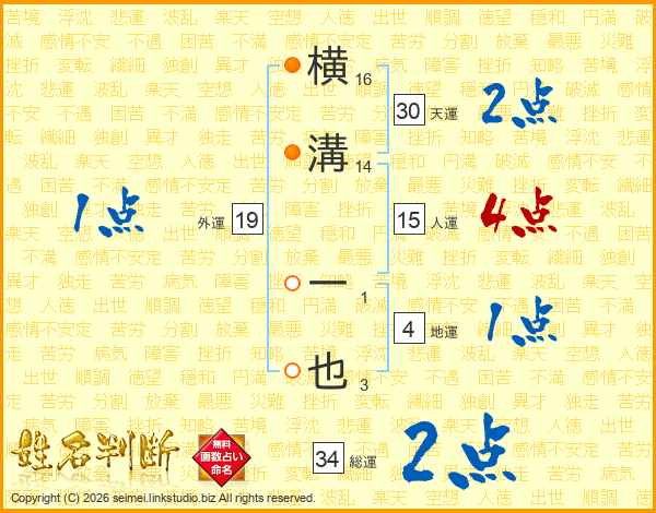 横溝一也さんの天運は30画の2点!