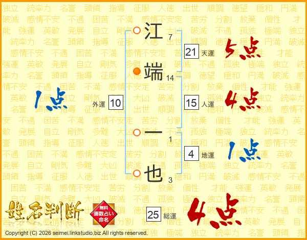 江端一也さんの総運は25画の4点!