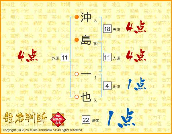 沖島一也さんの人運は11画の4点!