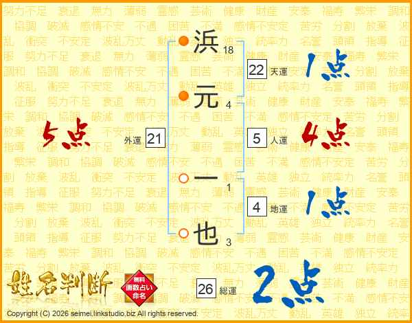 浜元一也さんの総運は26画の2点!