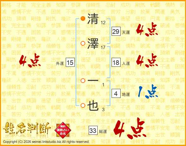 清澤一也さんの総運は33画の4点!