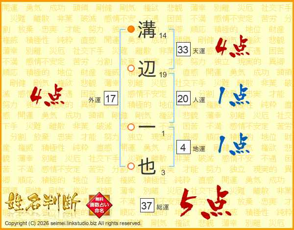 溝辺一也さんの総運は37画の5点!