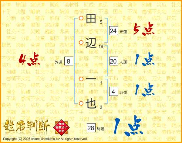 田辺一也さんの人運は20画の1点!