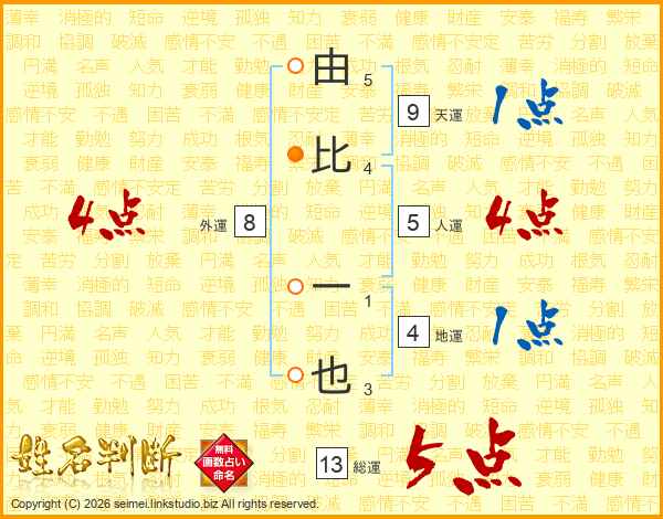 由比一也さんの総運は13画の5点!