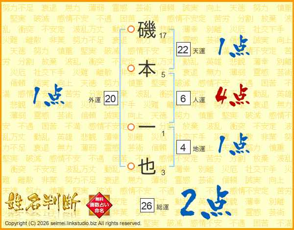 磯本一也さんの天運は22画の1点!