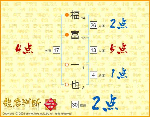 福富一也さんの天運は26画の2点!
