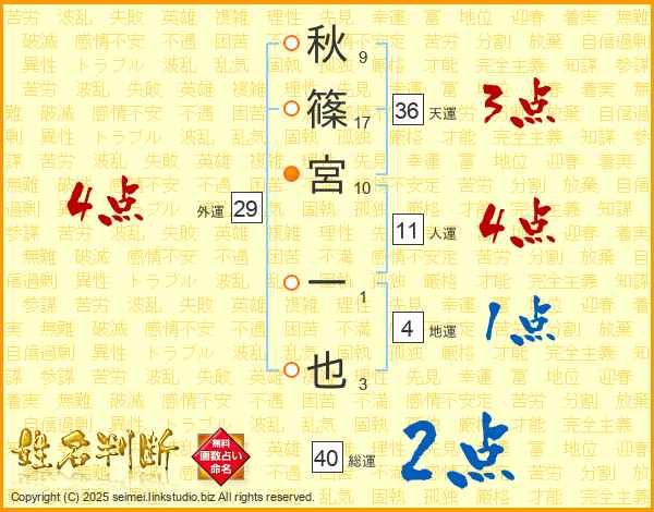 秋篠宮一也さんの人運は11画の4点!