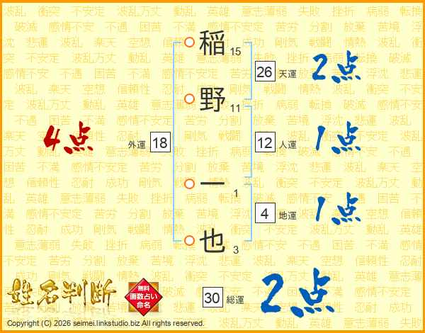 稲野一也さんの天運は26画の2点!