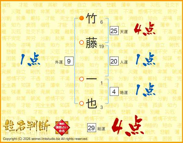 竹藤一也さんの総運は29画の4点!