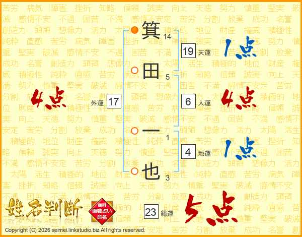 箕田一也さんの総運は23画の5点!