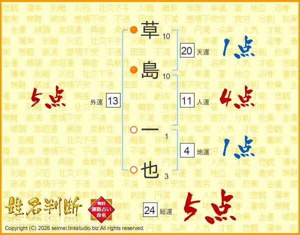 草島一也さんの総運は24画の5点!