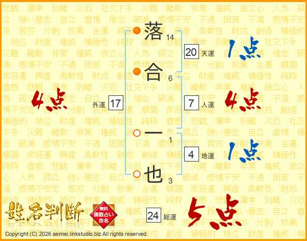 落合一也さんの天運は20画の1点!