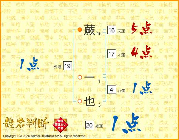 蕨一也さんの天運は16画の5点!