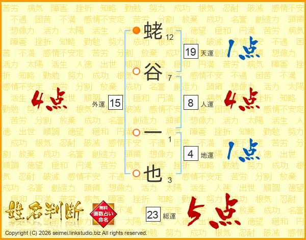 蛯(12画)谷(7画) 一(1画)也(3画)