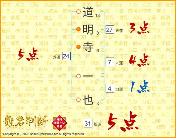 道明寺一也さんの総運は31画の5点!