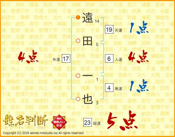 遠田一也さんの天運は19画の1点!