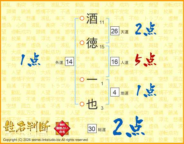 酒徳一也さんの天運は26画の2点!