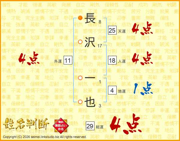 長沢一也さんの天運は25画の4点!
