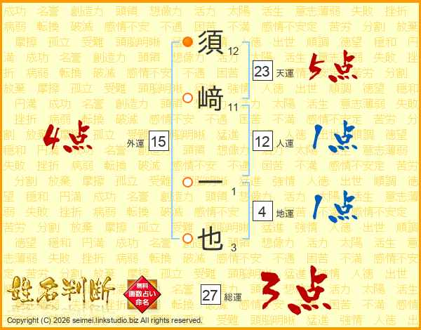 須﨑一也さんの総運は27画の3点!