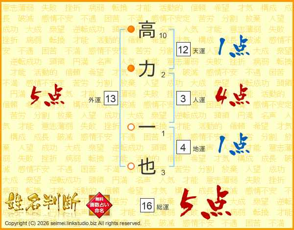 高力一也さんの総運は16画の5点!