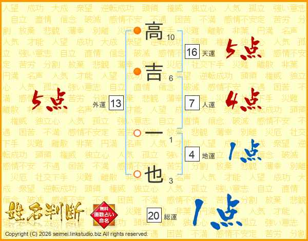 高吉一也さんの総運は20画の1点!