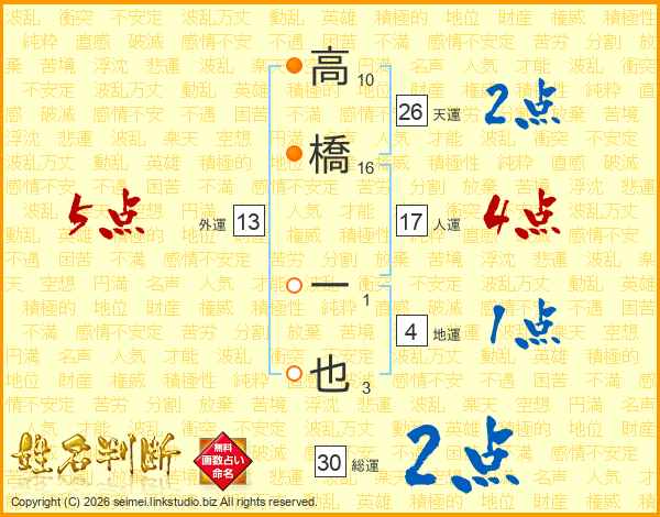 高橋一也さんの天運は26画の2点!