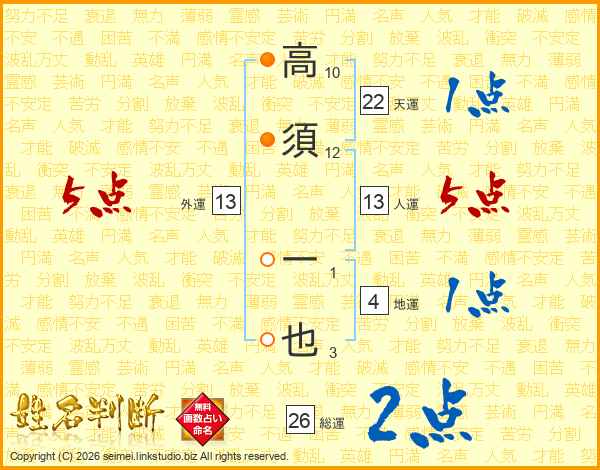 高須一也さんの総運は26画の2点!