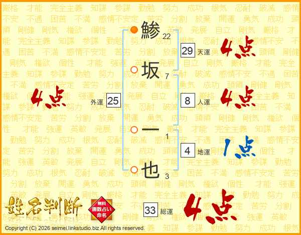 鯵坂一也さんの天運は29画の4点!
