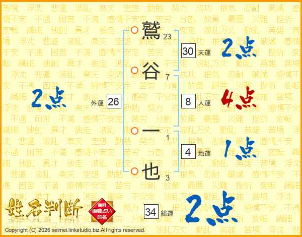 鷲谷一也さんの総運は34画の2点!