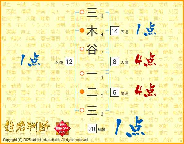 三木谷一二三さんの総運は20画の1点!