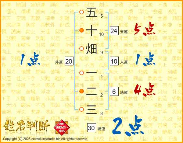 五十畑一二三さんの天運は24画の5点!