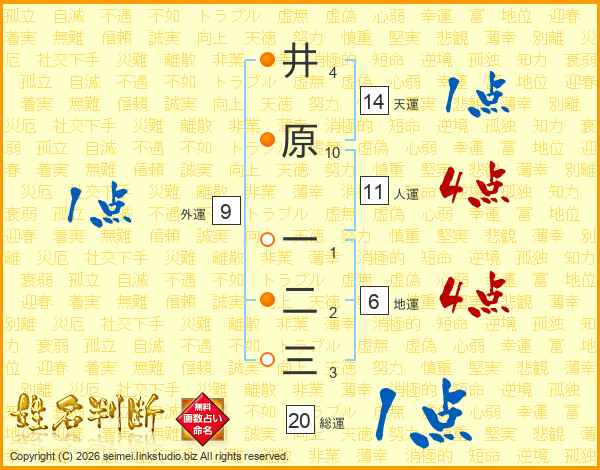 井原一二三さんの総運は20画の1点!