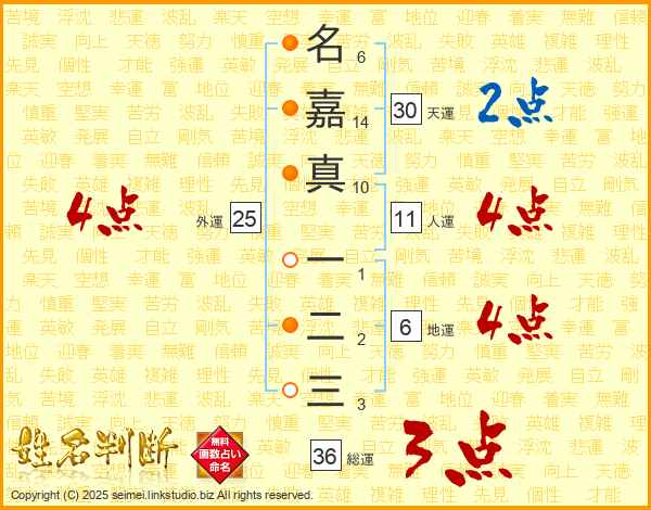 名(6画)嘉(14画)真(10画) 一(1画)二(2画)三(3画)