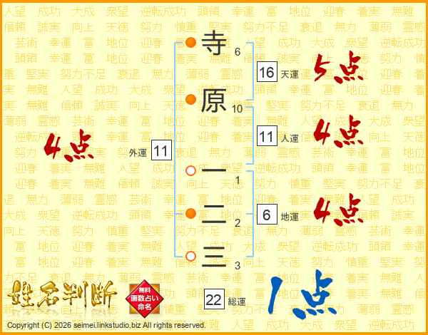 寺原一二三さんの総運は22画の1点!