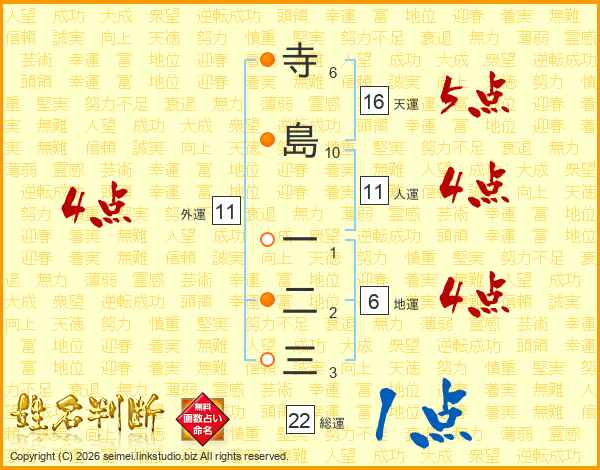 寺(6画)島(10画) 一(1画)二(2画)三(3画)