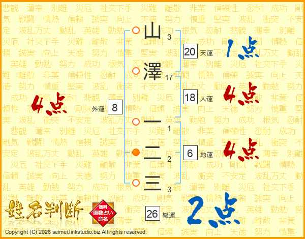 山澤一二三さんの総運は26画の2点!