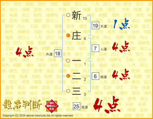 新庄一二三さんの総運は25画の4点!