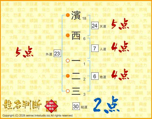 濱西一二三さんの天運は24画の5点!