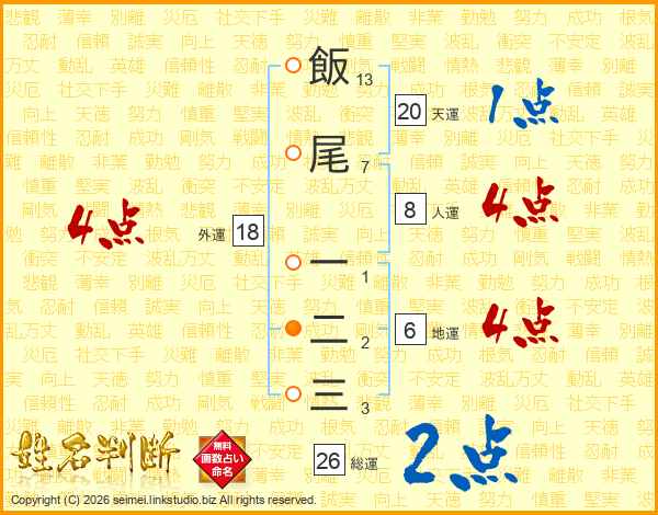 飯尾一二三さんの総運は26画の2点