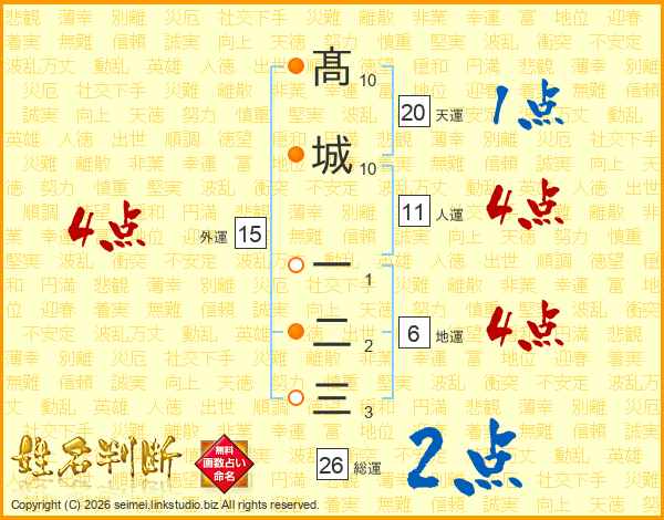 髙(10画)城(10画) 一(1画)二(2画)三(3画)