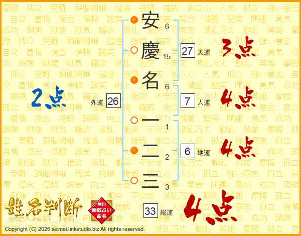 安慶名一二三さんの総運は33画の4点!